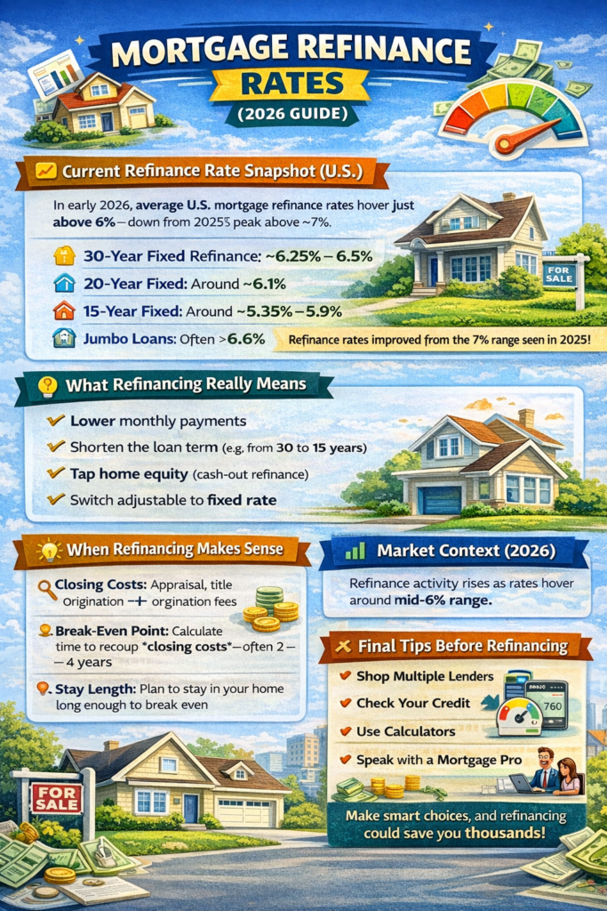 As of early February 2026, mortgage refinance rates in the U.S. have remained just above 6% for many loan types β a level thatβs attractive for some homeowners compared with the higher rates seen in recent years: οΏ½