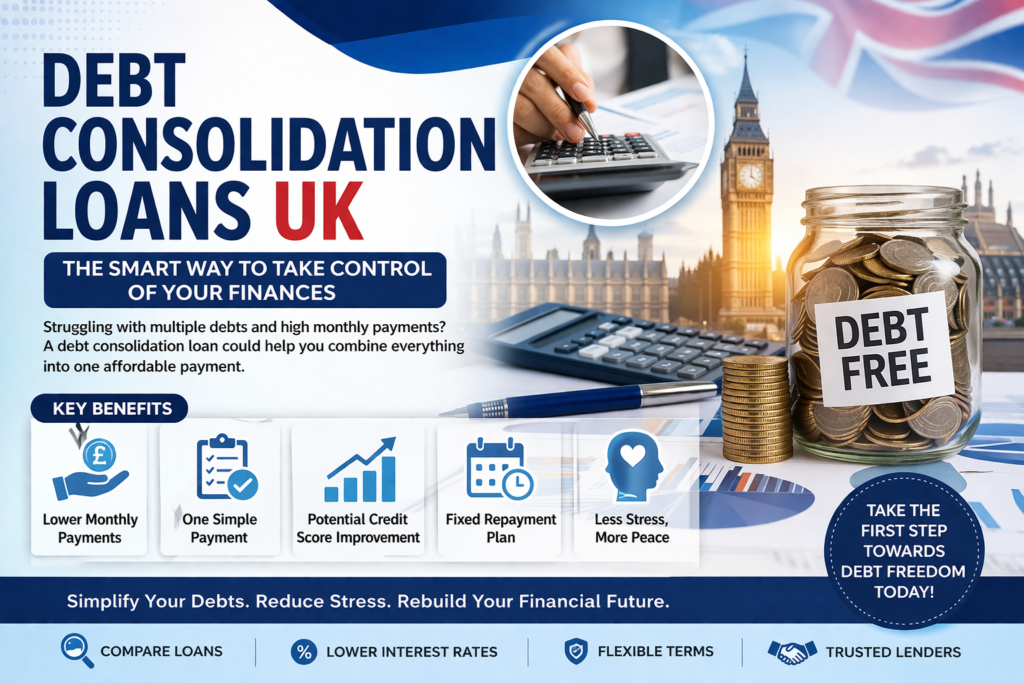 Managing multiple debts can feel overwhelming—especially when you’re juggling credit cards, personal loans, overdrafts, and other financial commitments. If you’re struggling to keep track of payments or facing high interest rates, a debt consolidation loan in the UK might be the financial solution you’ve been searching for.
