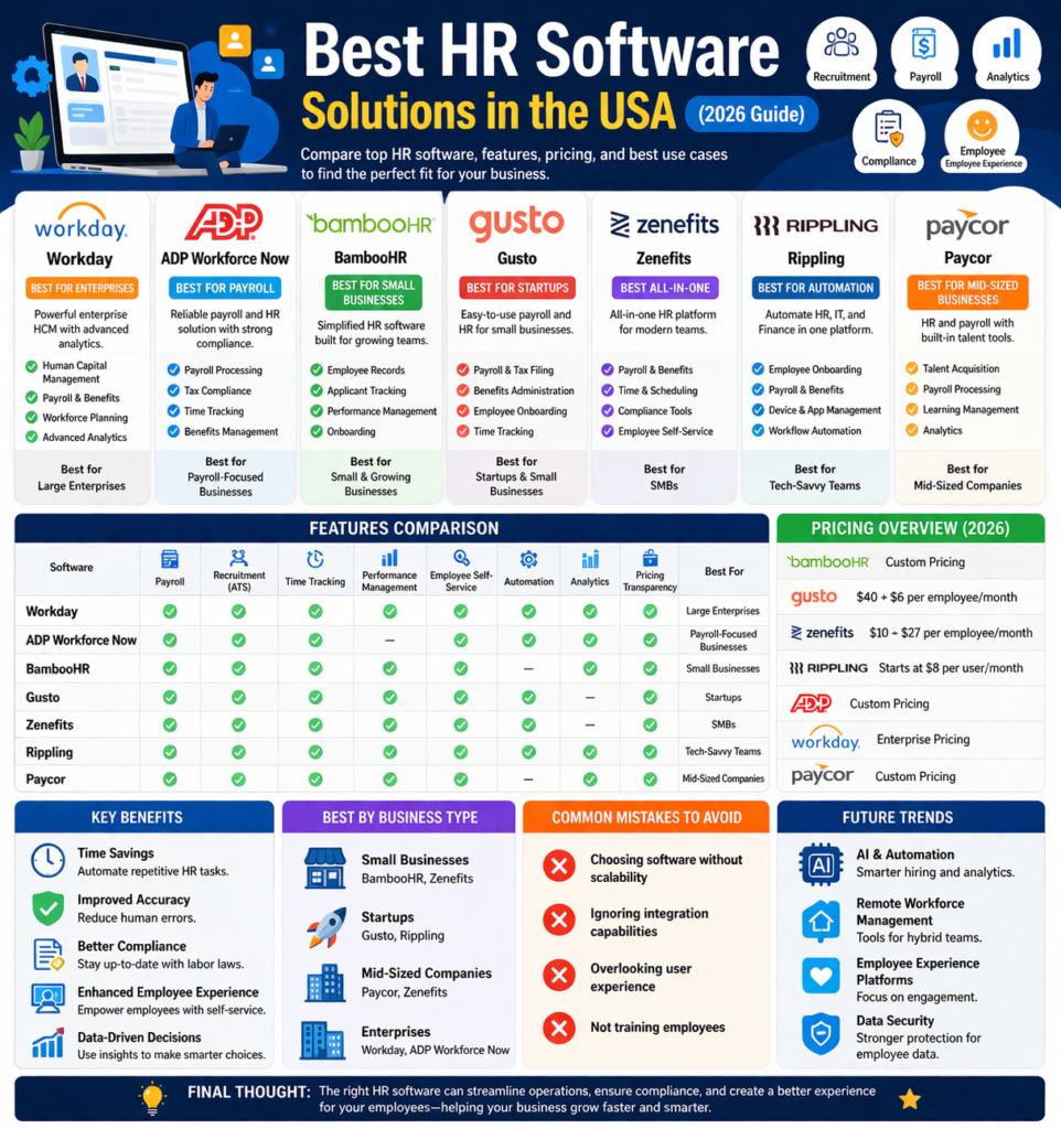 In this comprehensive guide, we explore the best HR software solutions in the USA, their features, benefits, pricing, and how to choose the right one.
