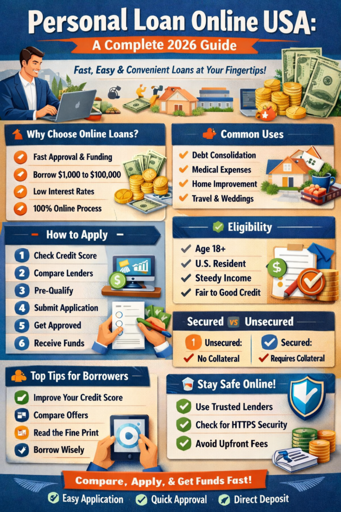 Online personal loans in the USA are a powerful financial tool when used wisely. They offer speed, flexibility, and convenience—but also require responsibility and careful planning. By understanding the process, comparing lenders, and managing repayments effectively, you can make the most of your borrowing experience.
